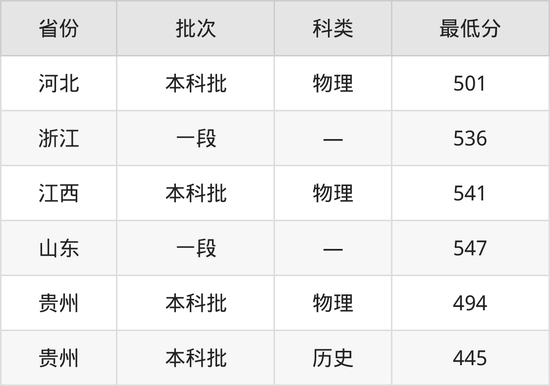 浙江中医药大学助产学专业在全国各省最低录取分数线为445分(贵州历史类),除此之外,在其余地区的最低分为河北物理类501分、浙江536分、江西物理类541分、山东547分等,以上数据均为2024年数据,供2025年高考生参考。