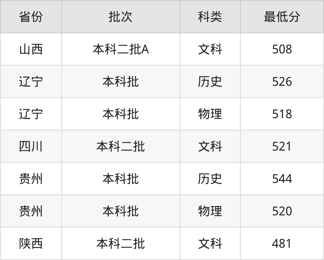 大连大学英语专业在全国各省最低录取分数线为481分(陕西文科),除此之外,在其余地区的最低分为山西文科508分、辽宁物理类518分、四川文科521分、贵州物理类520分等,以上数据均为2024年数据,供2025年高考生参考。
