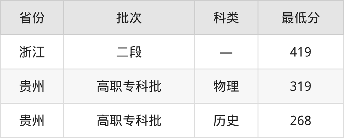 广西机电职业技术学院建筑室内设计专业在全国各省最低录取分数线为268分(贵州历史类),除此之外,在其余地区的最低分为浙江419分,以上数据均为2025年数据,供2026年高考生参考。