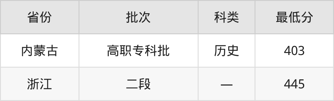 湖北水利水电职业技术学院计算机应用技术专业在全国各省最低录取分数线为403分(内蒙古历史类),除此之外,在其余地区的最低分为浙江445分,以上数据均为2025年数据,供2026年高考生参考。