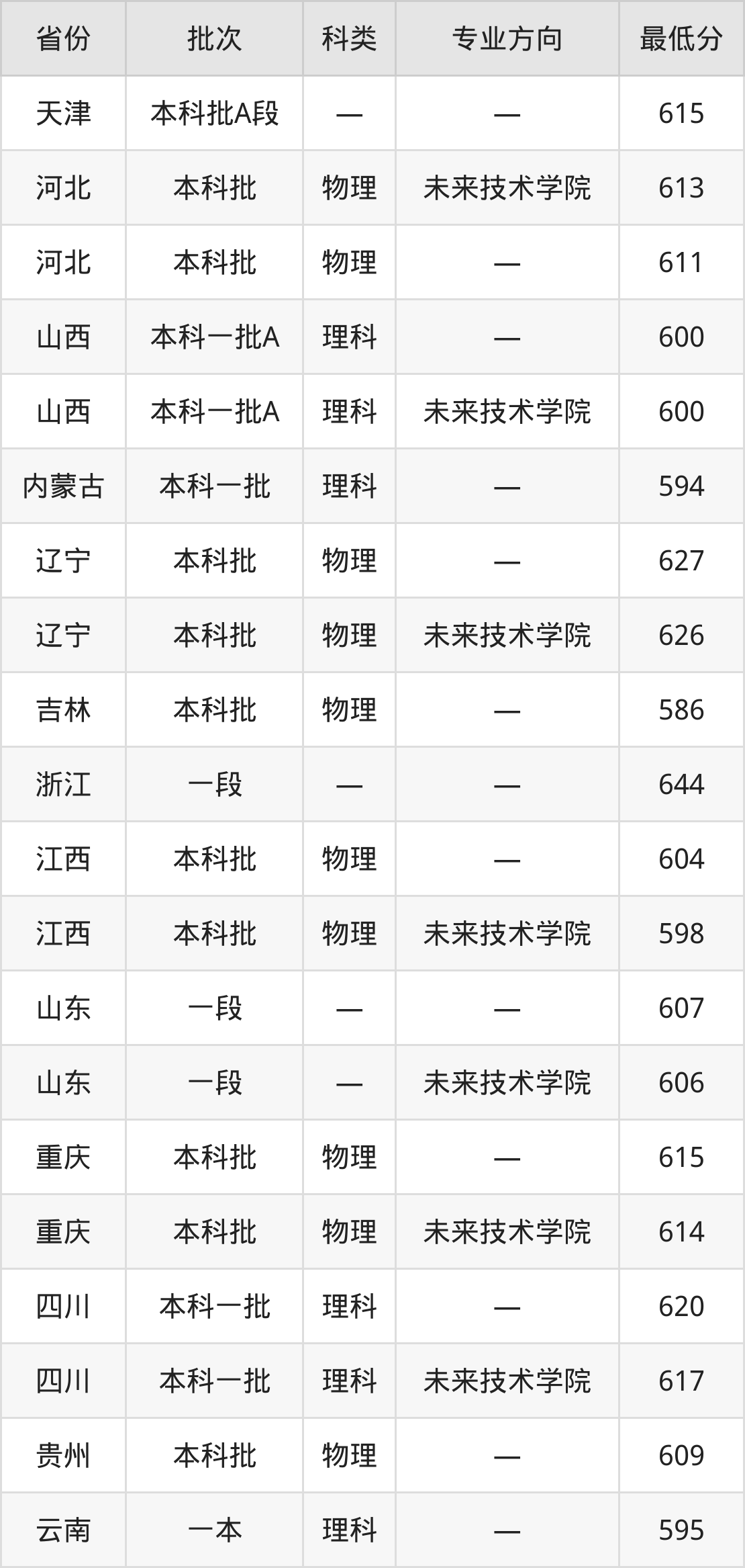 中国地质大学(武汉)电子信息类专业录取分数线从479分到645分不等,在部分地区的最低分数线如下:
