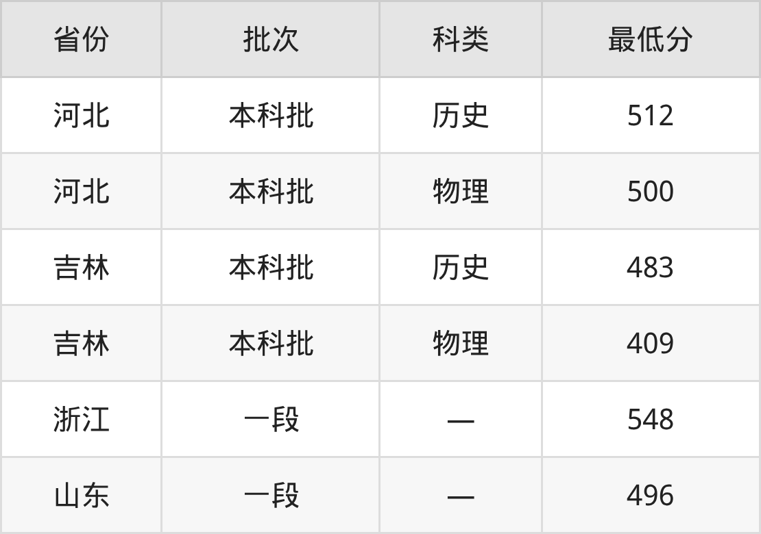 郑州财经学院英语专业在全国各省最低录取分数线为409分(吉林物理类),除此之外,在其余地区的最低分为河北物理类500分、浙江548分、山东496分,以上数据均为2025年数据,供2026年高考生参考。