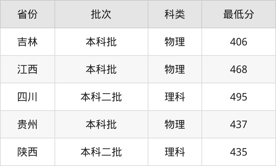 江西农业大学南昌商学院计算机科学与技术专业在全国各省最低录取分数线为406分(吉林物理类),除此之外,在其余地区的最低分为四川理科495分、贵州物理类437分、陕西理科435分、江西物理类468分,以上数据均为2024年数据,供2025年高考生参考。