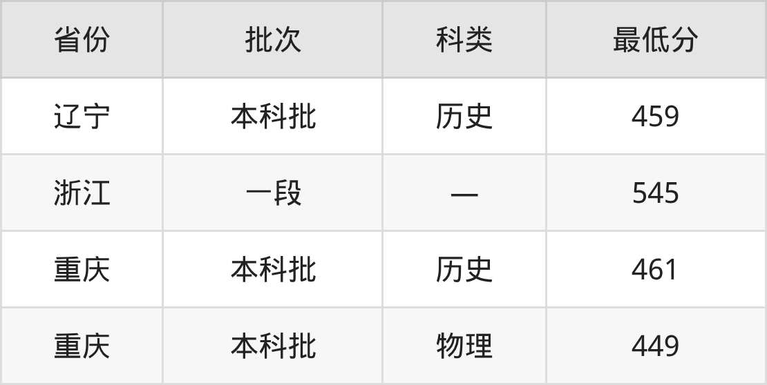 江西应用科技学院会计学专业在全国各省最低录取分数线为449分(重庆物理类),除此之外,在其余地区的最低分为辽宁历史类459分、浙江545分,以上数据均为2025年数据,供2026年高考生参考。