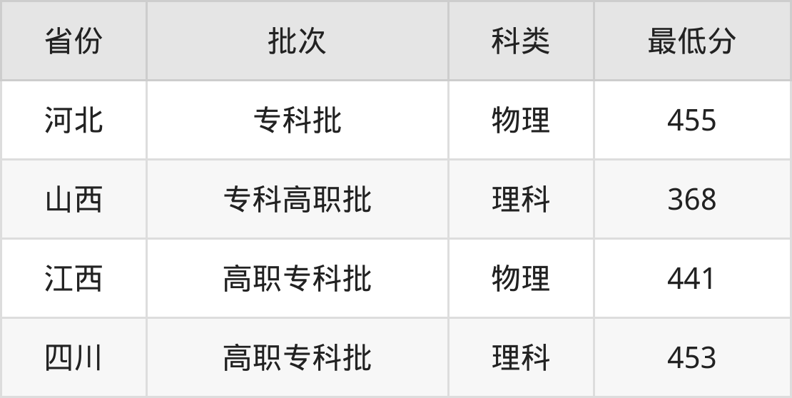 苏州经贸职业技术学院软件技术专业录取分数线从368分到455分不等,最低分数线如下: