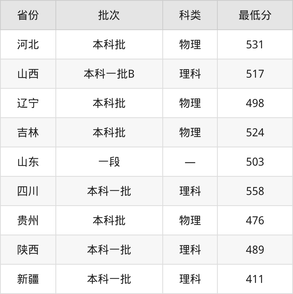 沈阳工业大学环境工程专业在全国各省最低录取分数线为411分(新疆理科),除此之外,在其余地区的最低分为山西理科517分、吉林物理类524分、四川理科558分、陕西理科489分等,以上数据均为2024年数据,供2025年高考生参考。