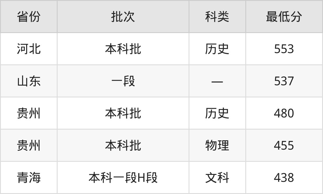 北京联合大学酒店管理专业在全国各省最低录取分数线为438分(青海文科),除此之外,在其余地区的最低分为河北历史类553分、山东537分、贵州物理类455分,以上数据均为2024年数据,供2025年高考生参考。