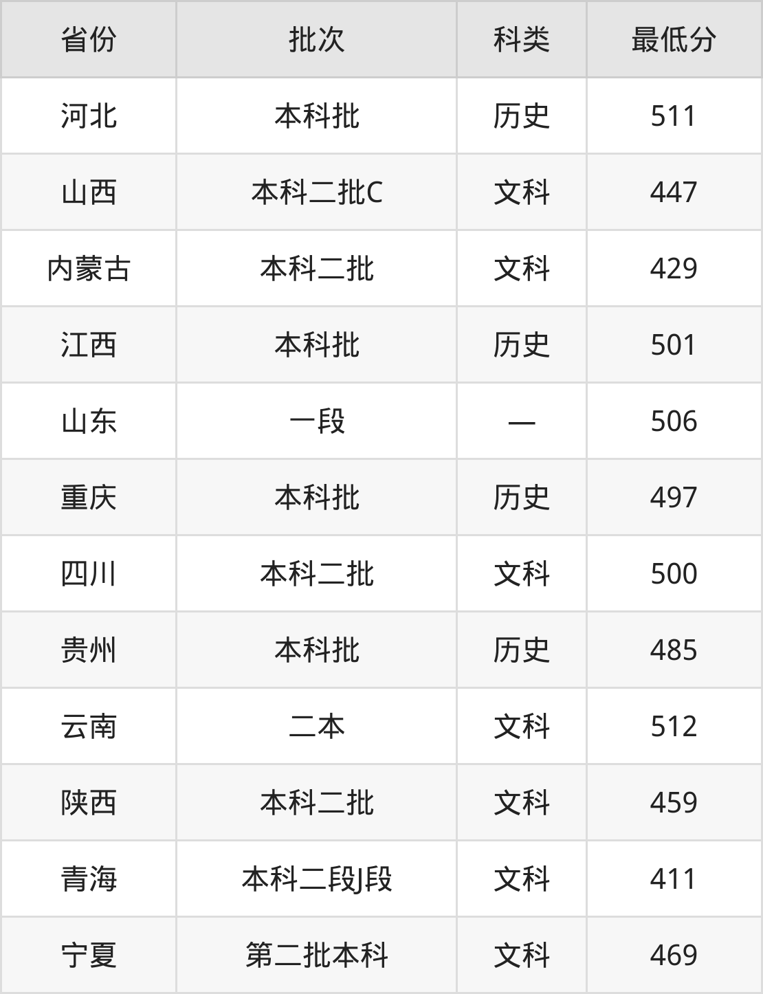 三峡大学科技学院法学专业录取分数线从411分到512分不等,在部分地区的最低分数线如下: