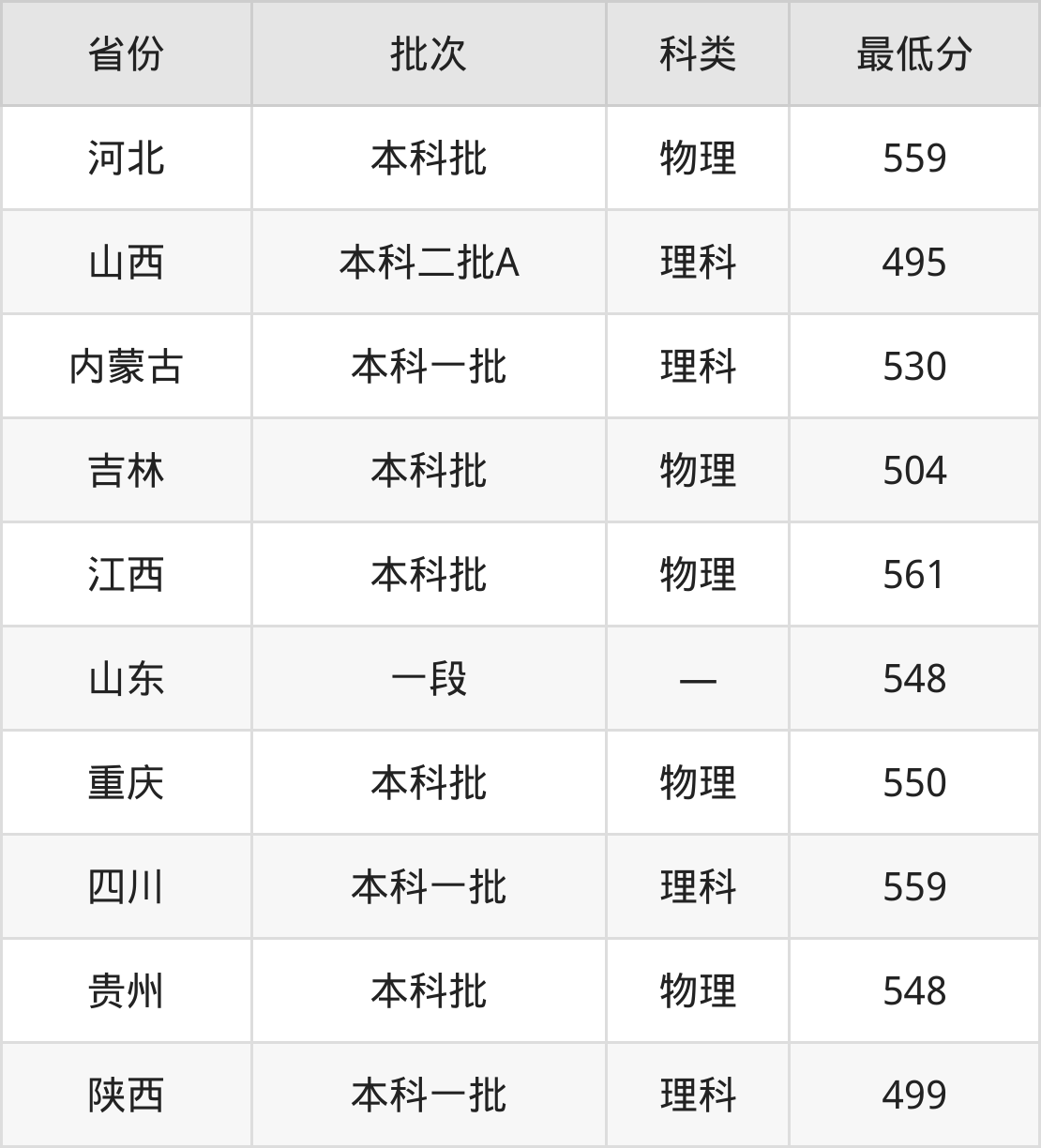 山西:理科最低495分