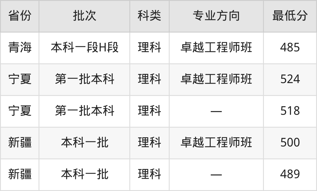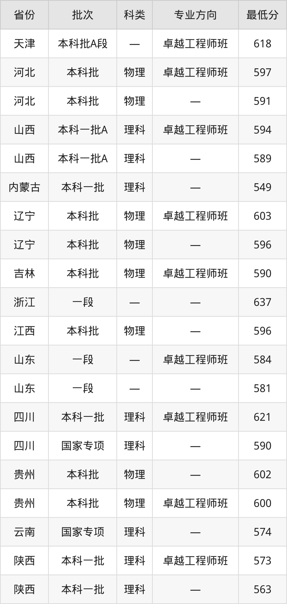 | 理科 | 卓越工程师班 | 14 |