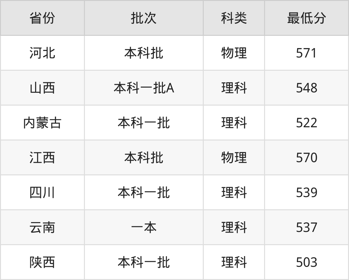 山西大学经济学专业在全国各省最低录取分数线为503分(陕西理科),除此之外,在其余地区的最低分为内蒙古理科522分、江西物理类570分、四川理科539分、云南理科537分等,以上数据均为2024年数据,供2025年高考生参考。