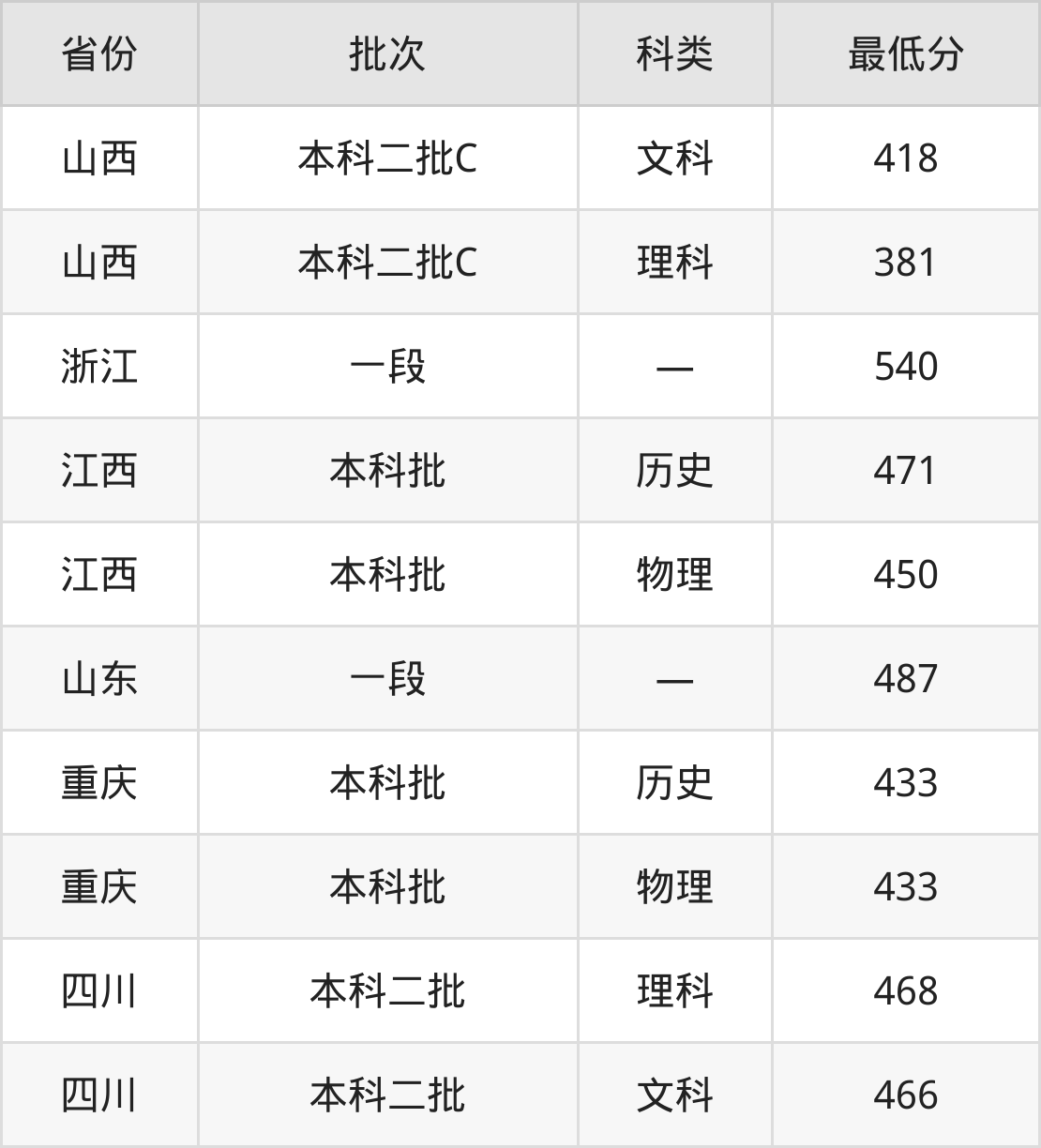 湖南涉外经济学院财务管理专业在全国各省最低录取分数线为381分(山西理科),除此之外,在其余地区的最低分为浙江540分、江西物理类450分、山东487分、重庆历史类433分等,以上数据均为2024年数据,供2025年高考生参考。