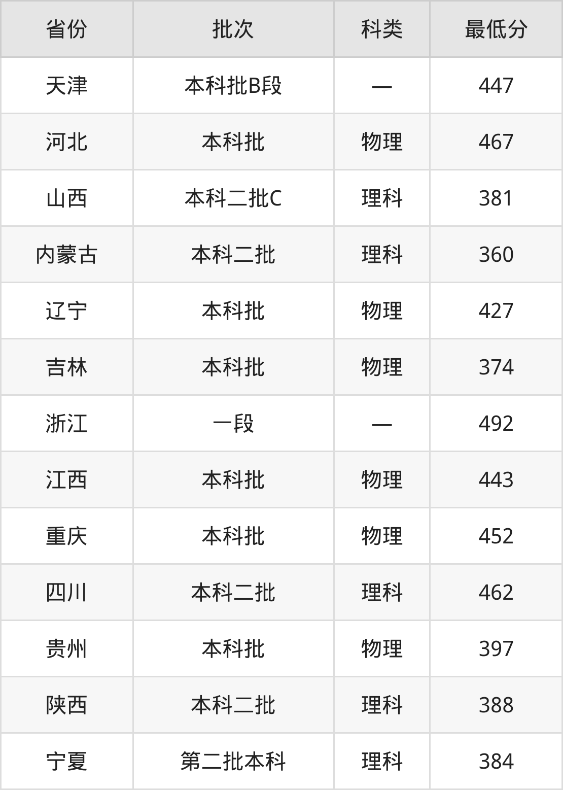 沈阳城市建设学院电气工程及其自动化专业录取分数线从360分到492分不等,在部分地区的最低分数线如下: