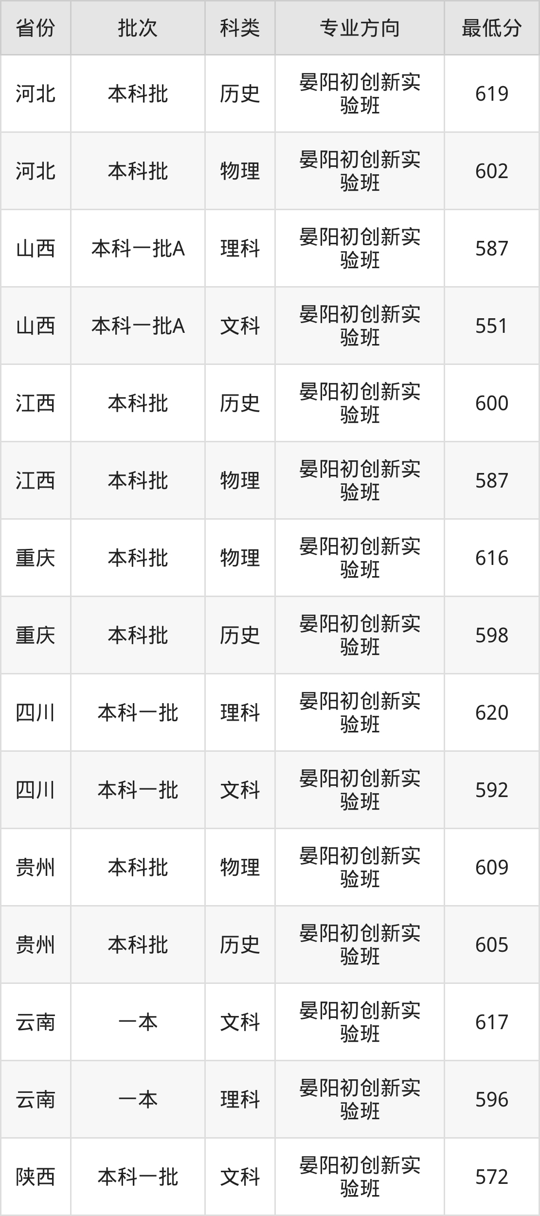 | 物理类 | 晏阳初创新实 验班 | 4 |
