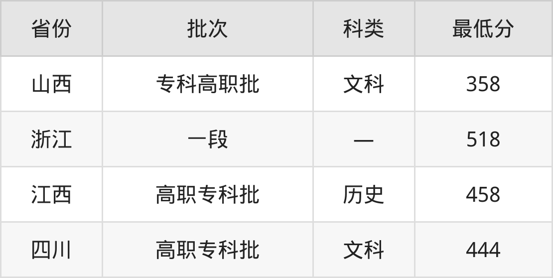 浙江机电职业技术大学市场营销专业录取分数线从358分到518分不等,最低分数线如下: