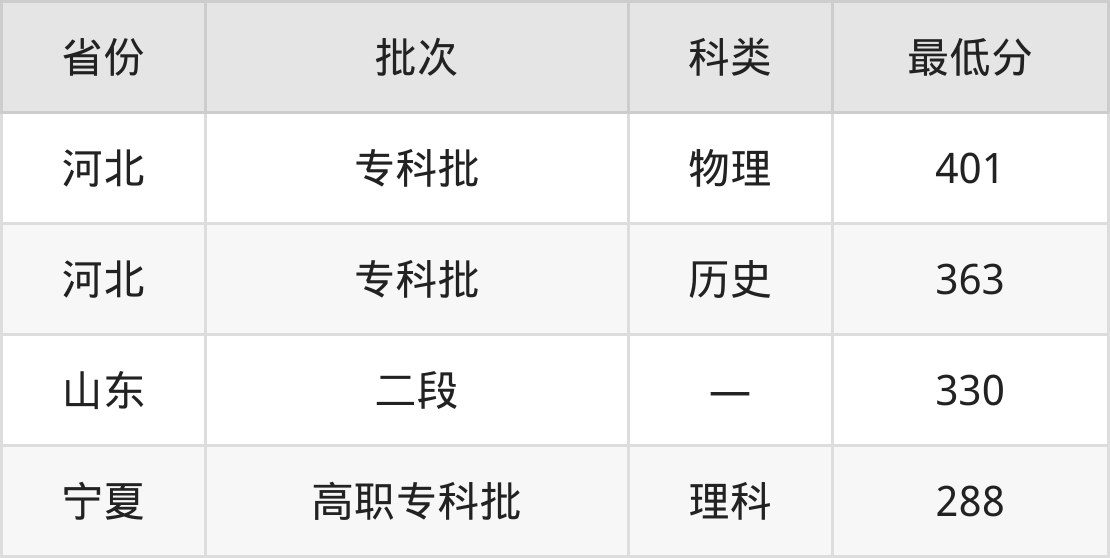 枣庄科技职业学院电子商务专业录取分数线从288分到401分不等,最低分数线如下:
