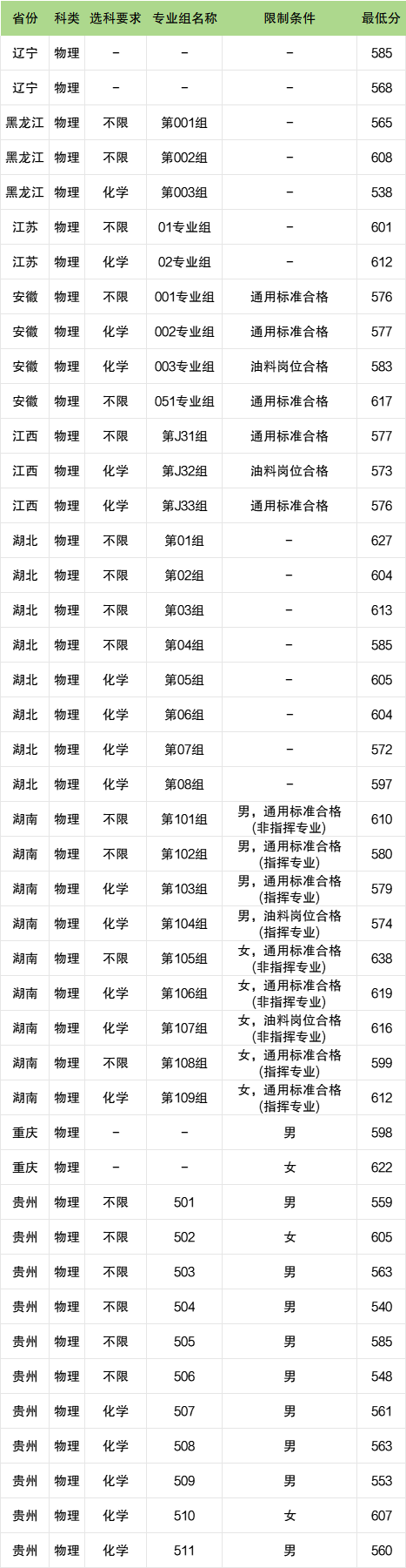 比如在湖南,陆军勤务学院录取最低分是574分,但这只是在物理类男生中的最低分,如果是物理类女生,最低分则高达599分。