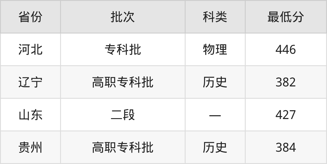 陕西航空职业技术学院航空材料精密成型技术专业录取分数线从382分到446分不等,最低分数线如下: