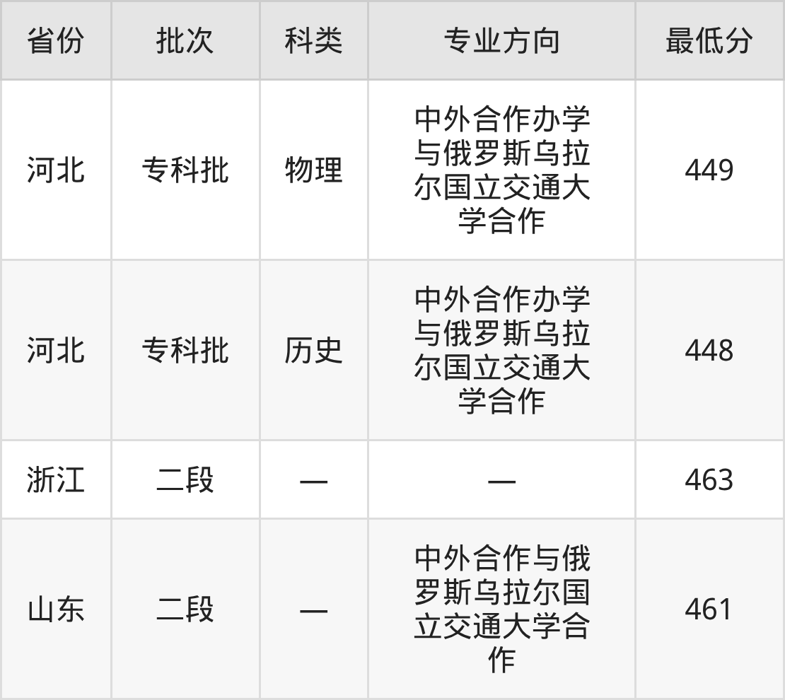 山东职业学院铁道信号自动控制专业在全国各省最低录取分数线为448分(河北历史类),除此之外,在其余地区的最低分为浙江463分、山东461分,以上数据均为2025年数据,供2026年高考生参考。