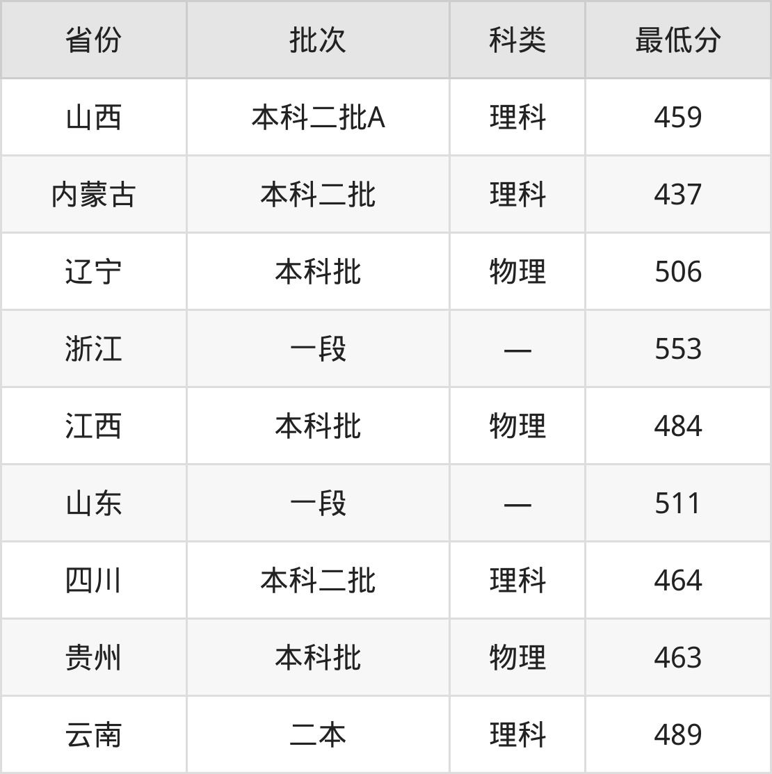 牡丹江医科大学护理学专业在全国各省最低录取分数线为437分(内蒙古理科),除此之外,在其余地区的最低分为山西理科459分、山东511分、贵州物理类463分、云南理科489分等,以上数据均为2024年数据,供2025年高考生参考。