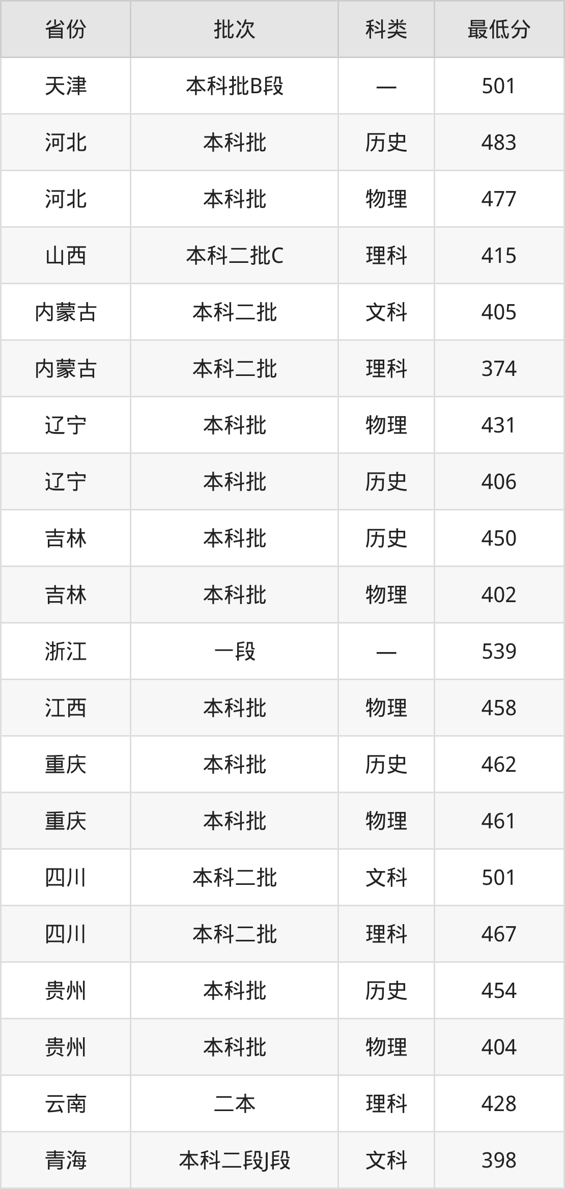 内蒙古:文科最低405分、理科最低374分