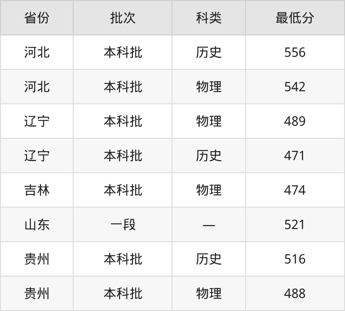 辽宁科技大学英语专业录取分数线从471分到556分不等,最低分数线如下: