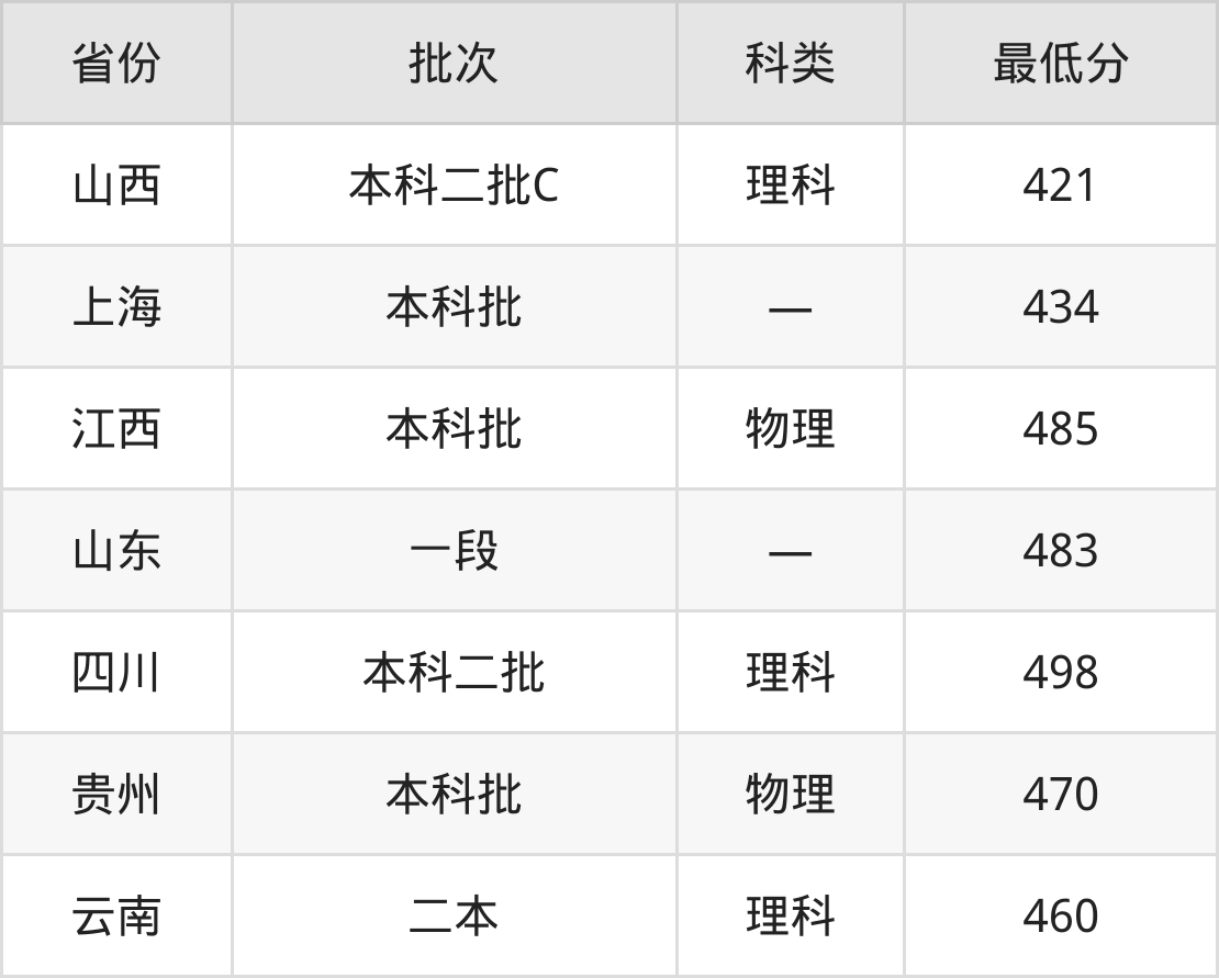 江苏科技大学苏州理工学院计算机科学与技术专业在全国各省最低录取分数线为421分(山西理科),除此之外,在其余地区的最低分为上海434分、江西物理类485分、山东483分、四川理科498分等,以上数据均为2024年数据,供2025年高考生参考。