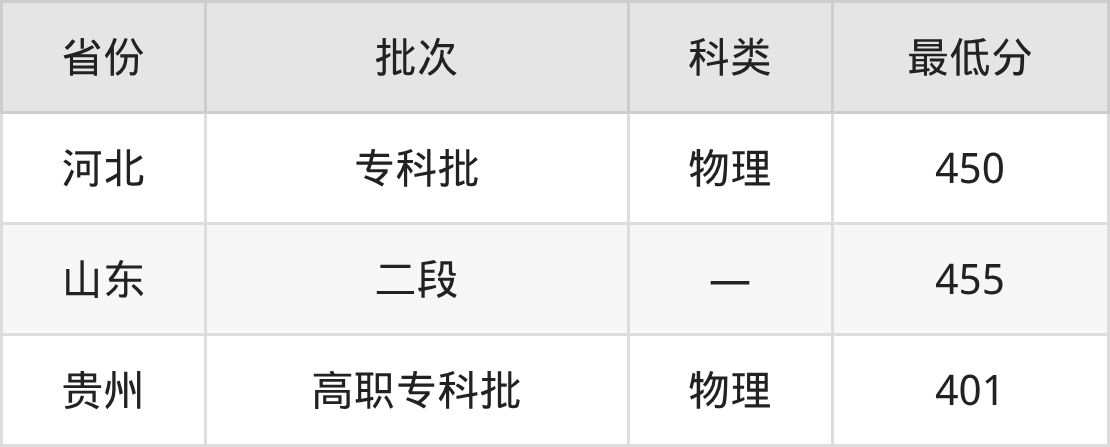 湖南化工职业技术学院石油化工技术专业在全国各省最低录取分数线为401分(贵州物理类),除此之外,在其余地区的最低分为河北物理类450分、山东455分,以上数据均为2025年数据,供2026年高考生参考。