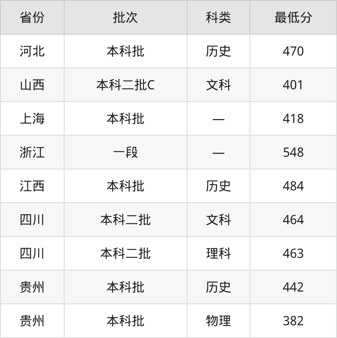 上海建桥学院国际经济与贸易专业在全国各省最低录取分数线为382分(贵州物理类),除此之外,在其余地区的最低分为山西文科401分、上海418分、浙江548分、江西历史类484分等,以上数据均为2024年数据,供2025年高考生参考。