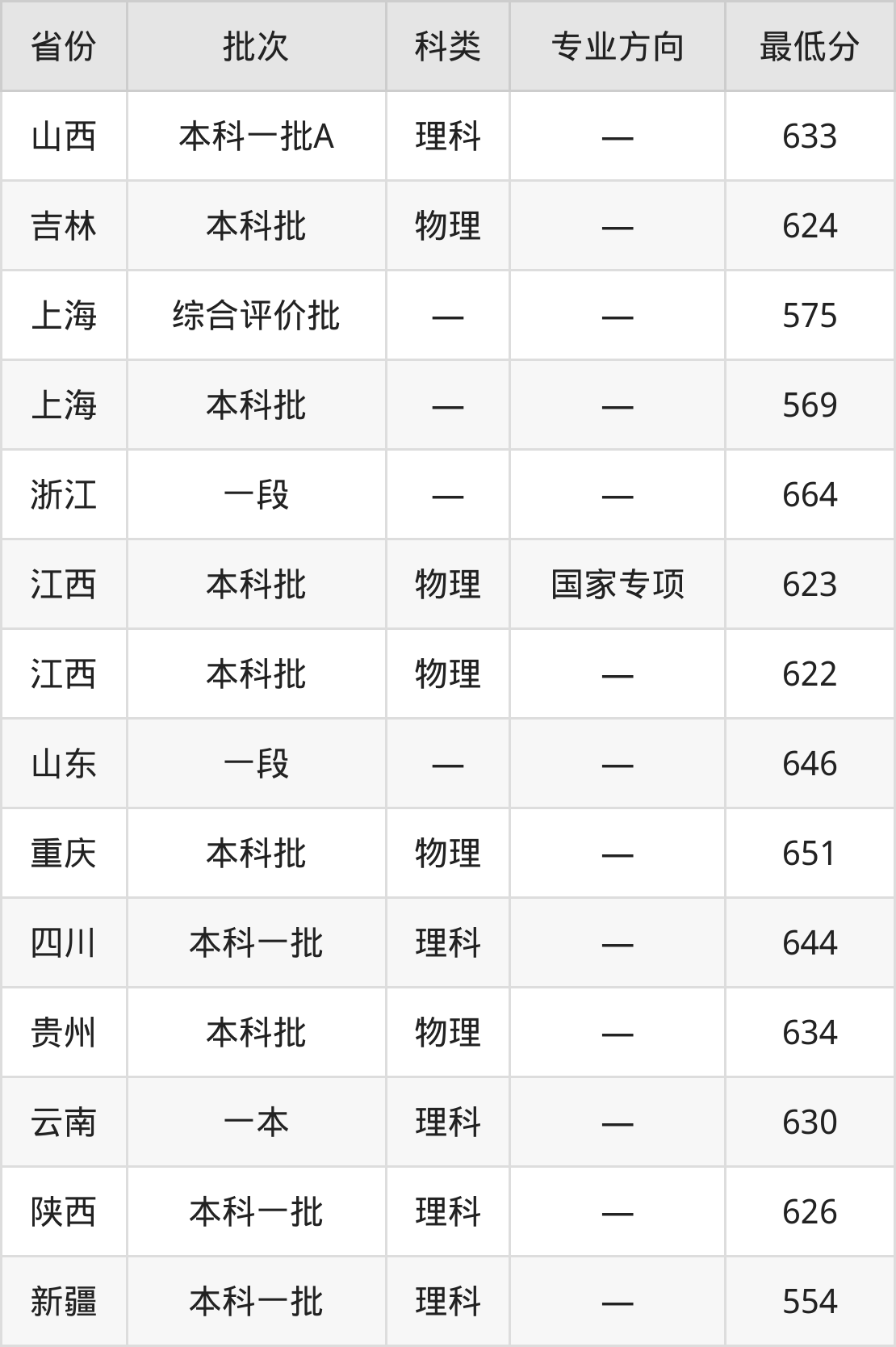 山西:理科最低633分