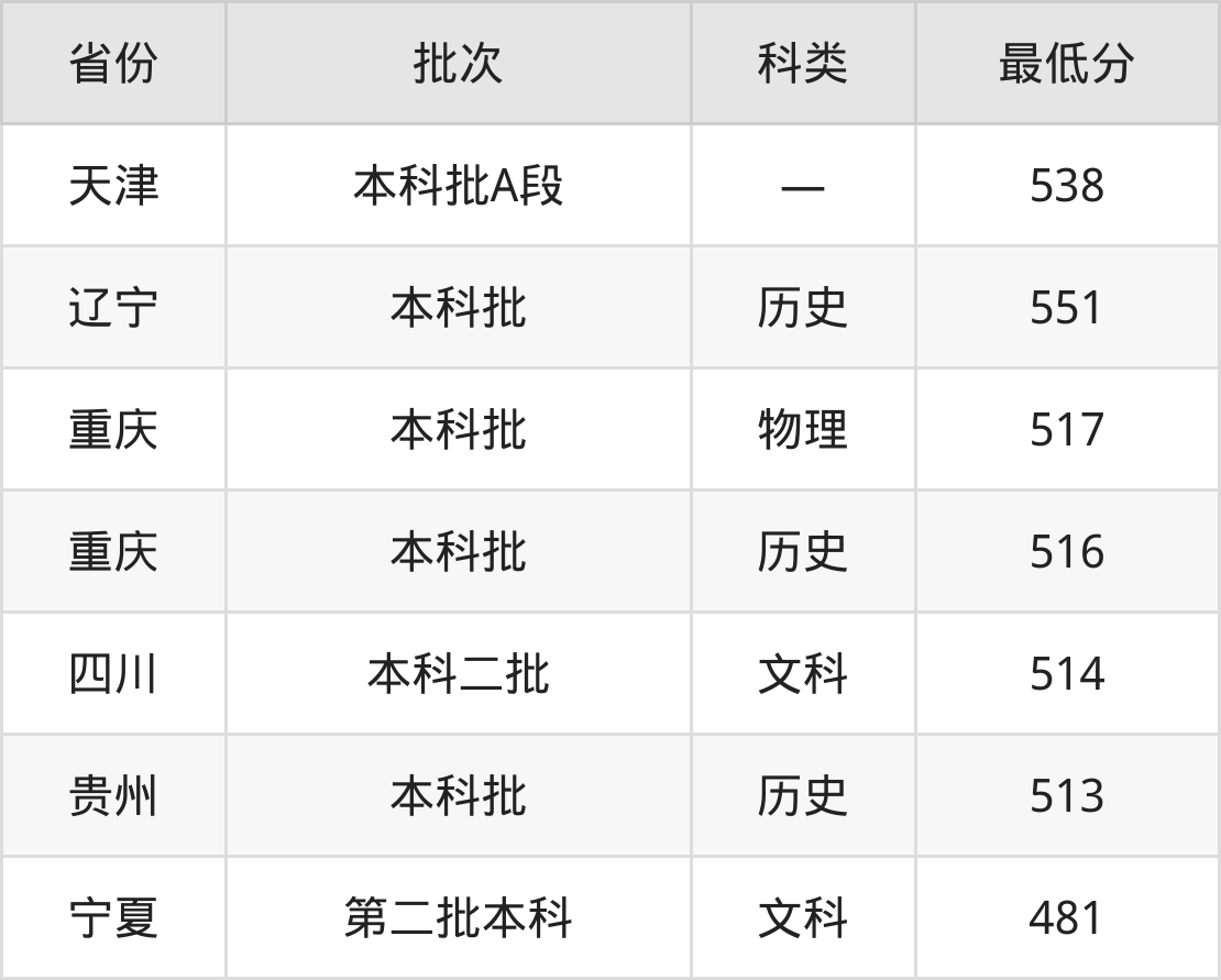 哈尔滨师范大学秘书学专业在全国各省最低录取分数线为481分(宁夏文科),除此之外,在其余地区的最低分为辽宁历史类551分、重庆历史类516分、四川文科514分、贵州历史类513分等,以上数据均为2024年数据,供2025年高考生参考。