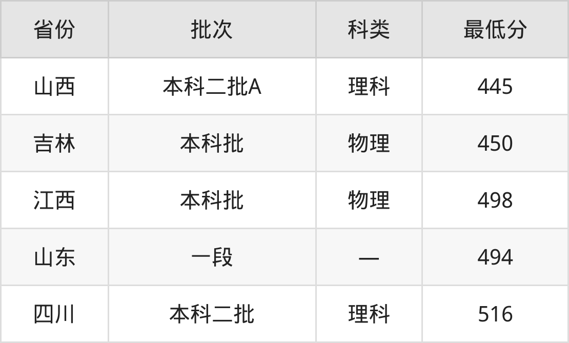山西:理科最低445分