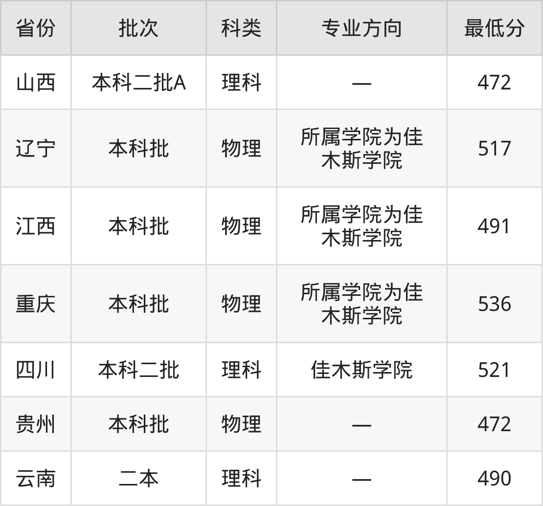 黑龙江中医药大学医学检验技术专业在全国各省录取分数线:
