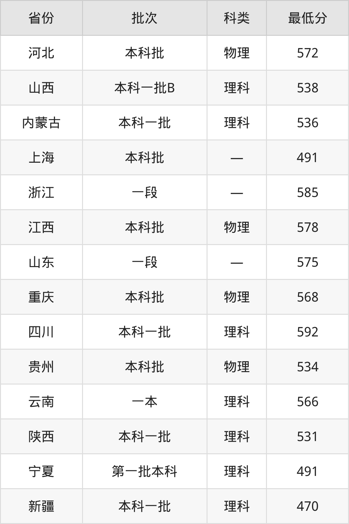 内蒙古:理科最低536分