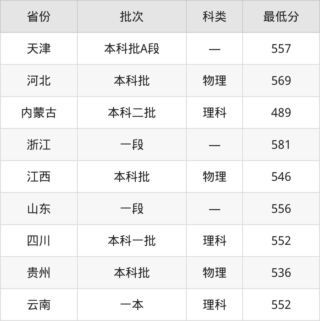 河南科技大学自动化专业在全国各省最低录取分数线为489分(内蒙古理科),除此之外,在其余地区的最低分为天津557分、贵州物理类536分、云南理科552分、河北物理类569分等,以上数据均为2024年数据,供2025年高考生参考。