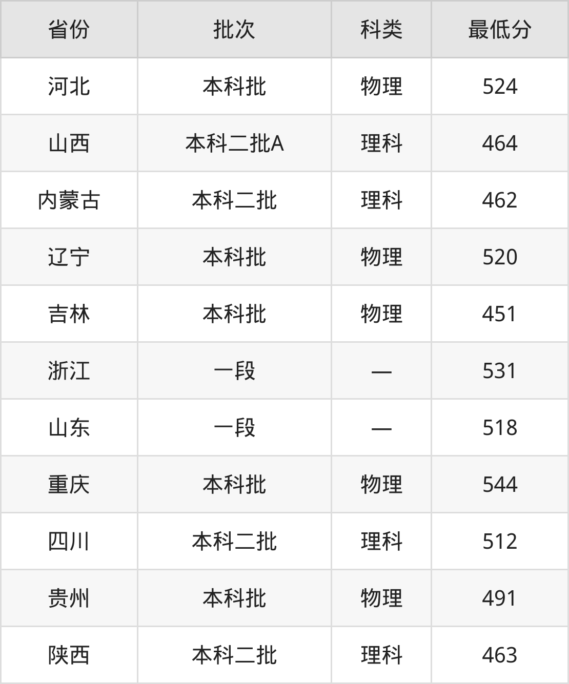吉林医药学院医学影像技术专业录取分数线从451分到544分不等,在部分地区的最低分数线如下:
