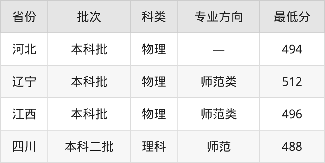 沧州师范学院生物科学专业录取分数线从488分到512分不等,最低分数线如下: