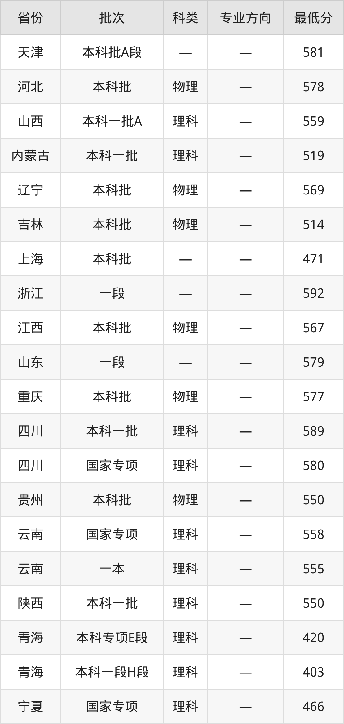 石河子大学计算机类专业录取分数线从403分到592分不等,在部分地区的最低分数线如下: