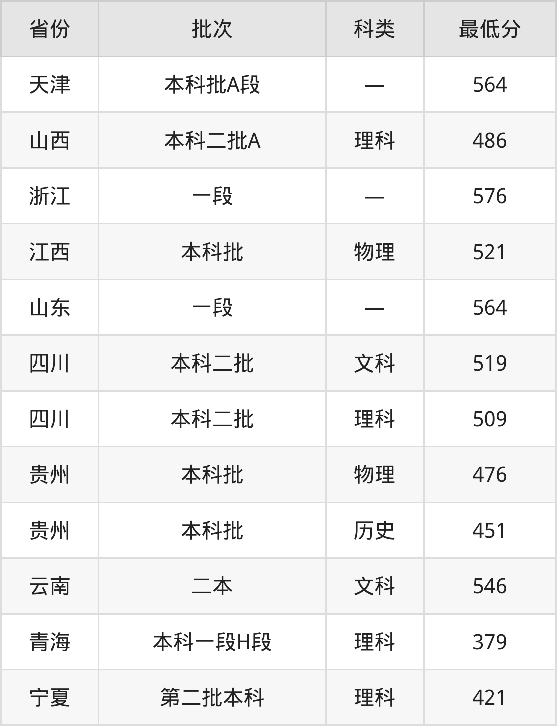 湖北中医药大学药事管理专业在全国各省最低录取分数线为379分(青海理科),除此之外,在其余地区的最低分为江西物理类521分、贵州历史类451分、宁夏理科421分、山西理科486分等,以上数据均为2024年数据,供2025年高考生参考。