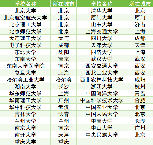 目前全国强基计划大学共计39所,它们分别位于18个省市区,其中湖南省院校包含有:中南大学、湖南大学、中国人民解放军国防科技大学;四川省院校包含有:四川大学、电子科技大学;陕西省院校包含:西北农林科技大学、西安交通大学、西北工业大学。