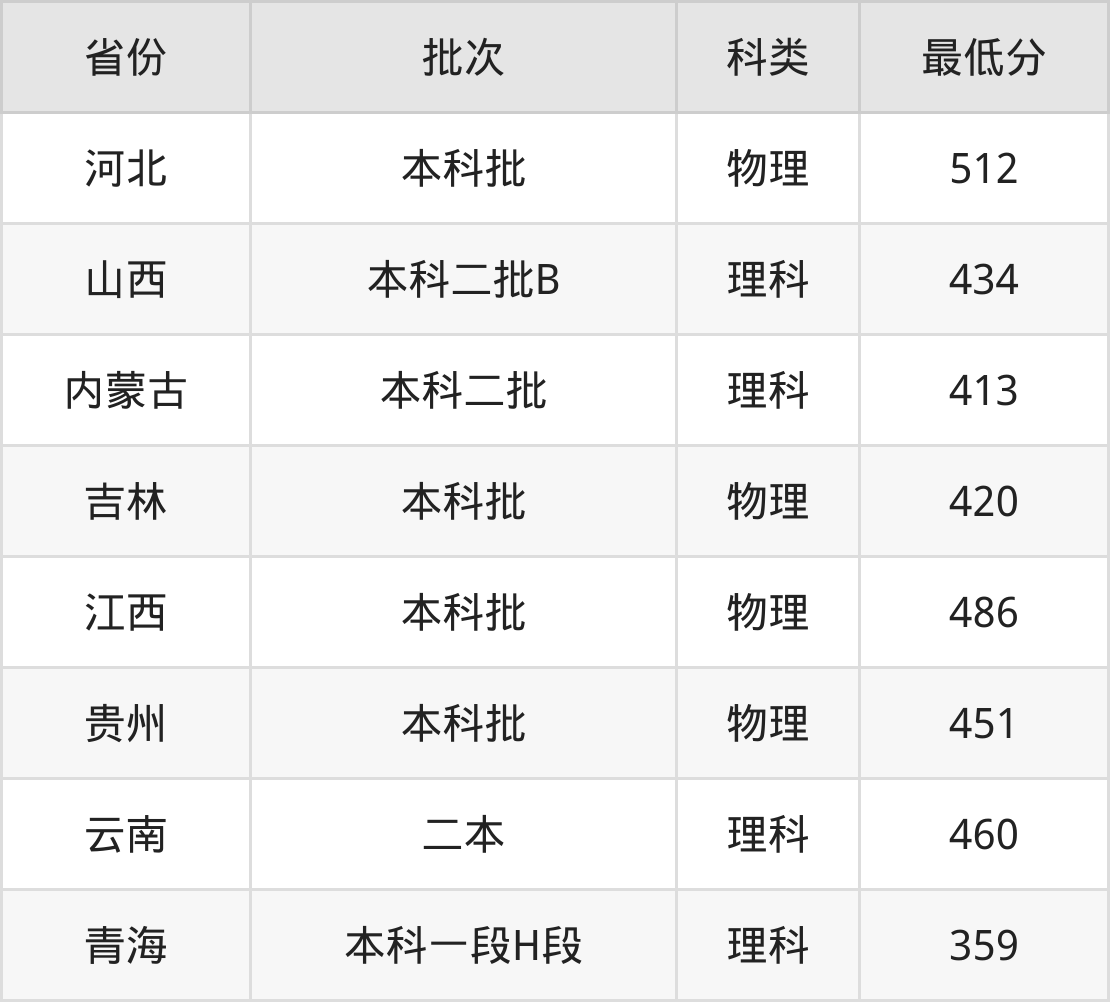 太原学院新能源材料与器件专业在全国各省最低录取分数线为359分(青海理科),除此之外,在其余地区的最低分为江西物理类486分、贵州物理类451分、云南理科460分、河北物理类512分等,以上数据均为2024年数据,供2025年高考生参考。