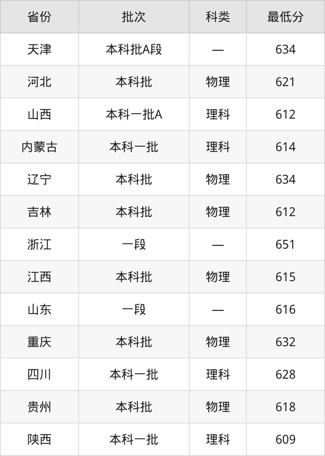 合肥工业大学计算机科学与技术专业录取分数线从609分到651分不等,在部分地区的最低分数线如下:
