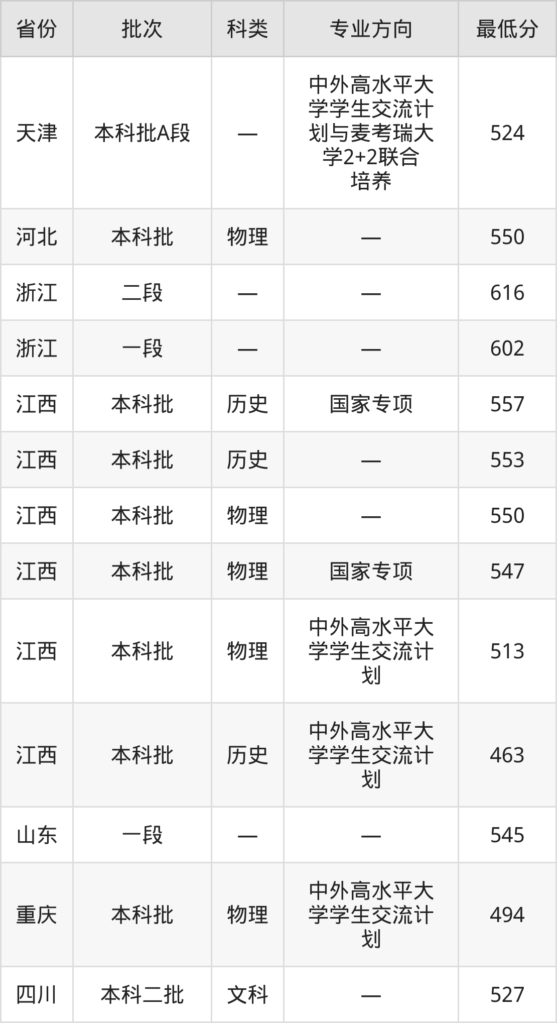 | 物理类 | 第502组 | 中外高水平大 学学生交流计 划 | 3 |