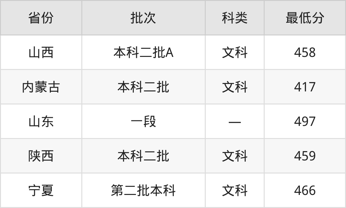 内蒙古艺术学院广播电视编导专业在全国各省最低录取分数线为417分(内蒙古文科),除此之外,在其余地区的最低分为山西文科458分、山东497分、陕西文科459分、宁夏文科466分,以上数据均为2024年数据,供2025年高考生参考。