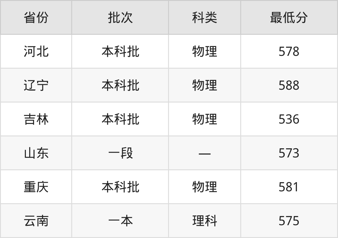 昆明理工大学电子信息工程专业在全国各省最低录取分数线为536分(吉林物理类),除此之外,在其余地区的最低分为辽宁物理类588分、山东573分、重庆物理类581分、云南理科575分等,以上数据均为2024年数据,供2025年高考生参考。