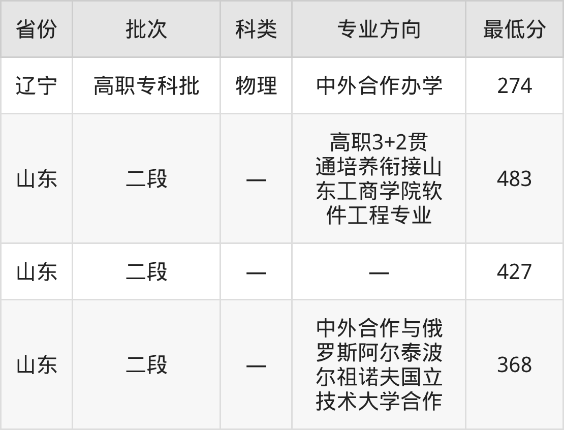 软件技术、软件技术(高职3+2贯通培养)(衔接山东工商学院软件工程专业)5600元/年、软件技术(中外合作)(与俄罗斯阿尔泰波尔祖诺夫国立技术大学合作)11000元/年。