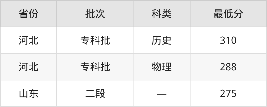 滨州科技职业学院智能网联汽车技术专业在全国各省最低录取分数线为275分(山东),除此之外,在其余地区的最低分为河北物理类288分,以上数据均为2025年数据,供2026年高考生参考。