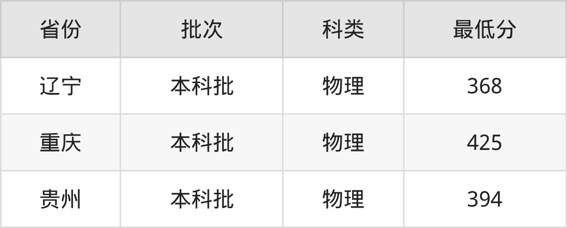 福州外语外贸学院工程造价专业在全国各省最低录取分数线为368分(辽宁物理类),除此之外,在其余地区的最低分为重庆物理类425分、贵州物理类394分,以上数据均为2025年数据,供2026年高考生参考。