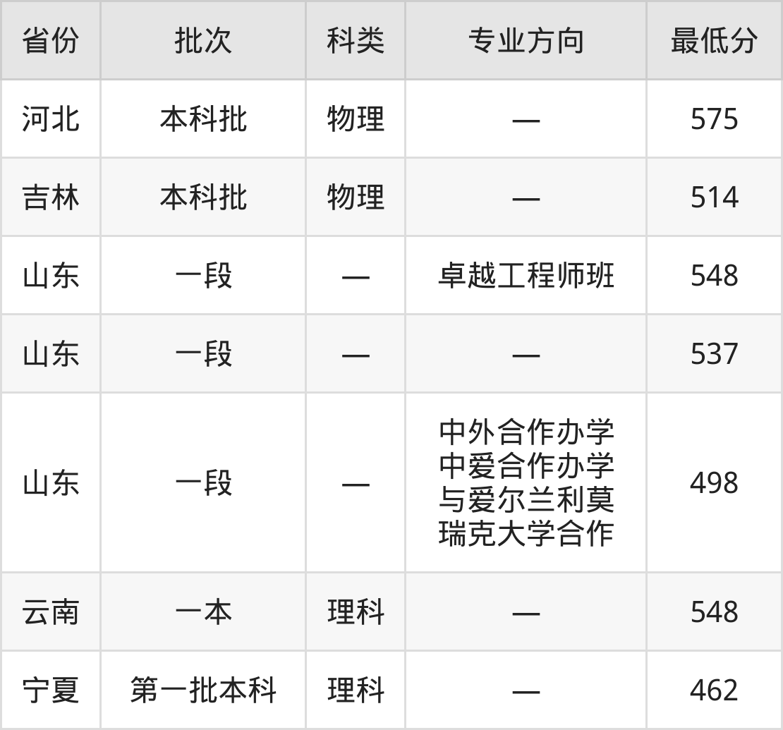 山东理工大学机械设计制造及其自动化专业录取分数线从462分到575分不等,最低分数线如下: