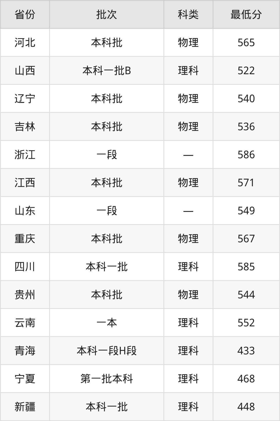 山西:理科最低522分
